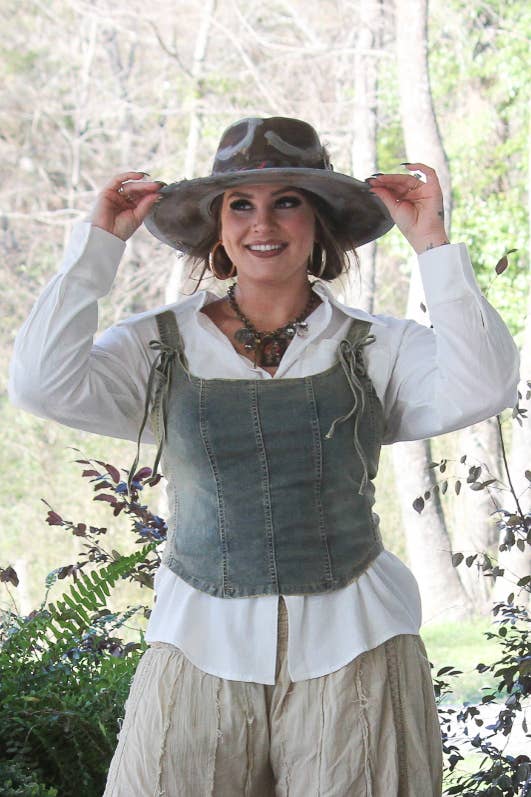 • Elevate your free-spirited aesthetic with this premium 100% cotton denim corset tank, featuring an adjustable lace-up back for a perfect, custom fit. This designer-made USA staple blends vintage edge with effortless bohemian charm for a truly high-impact look.