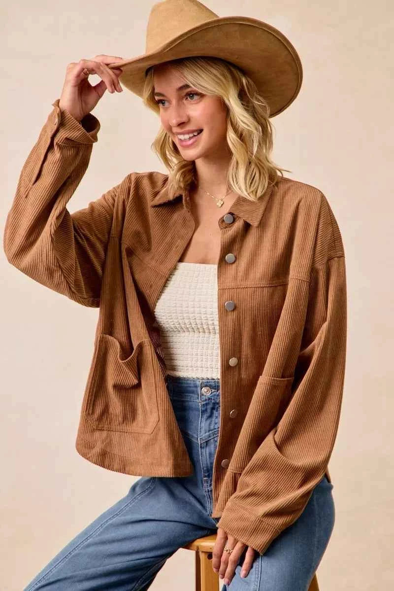 BiBi Corduroy Relaxed Fit Shacket with Back Pleat