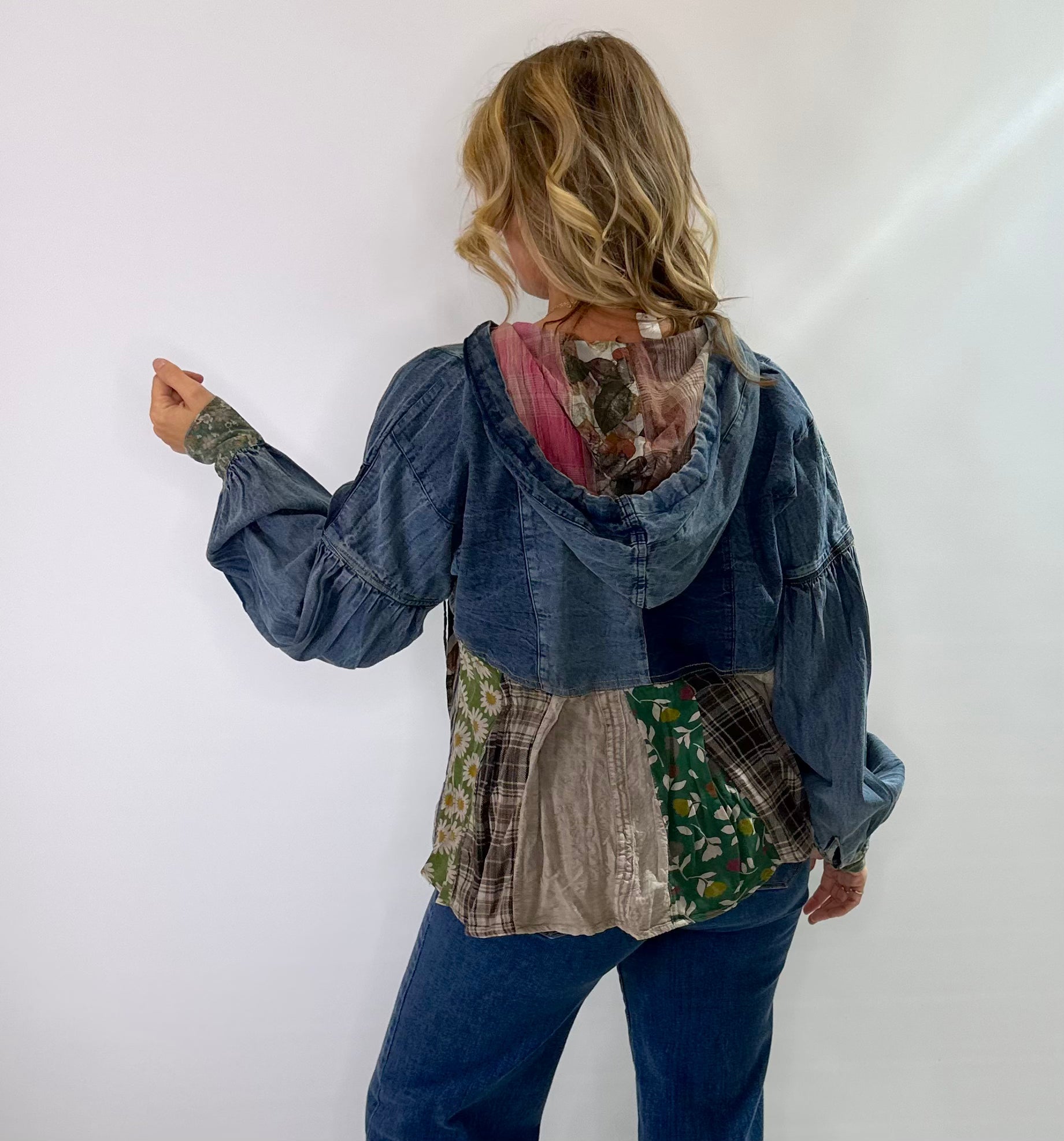 Designed with comfort in mind, it includes a roomy hood with adjustable drawstrings and long puff sleeves finished with button cuffs for a hint of structure. The relaxed silhouette makes it perfect for layering, lounging or styling with your favorite denim and boots. If you love pieces that feel one-of-a kind, this top is your match.