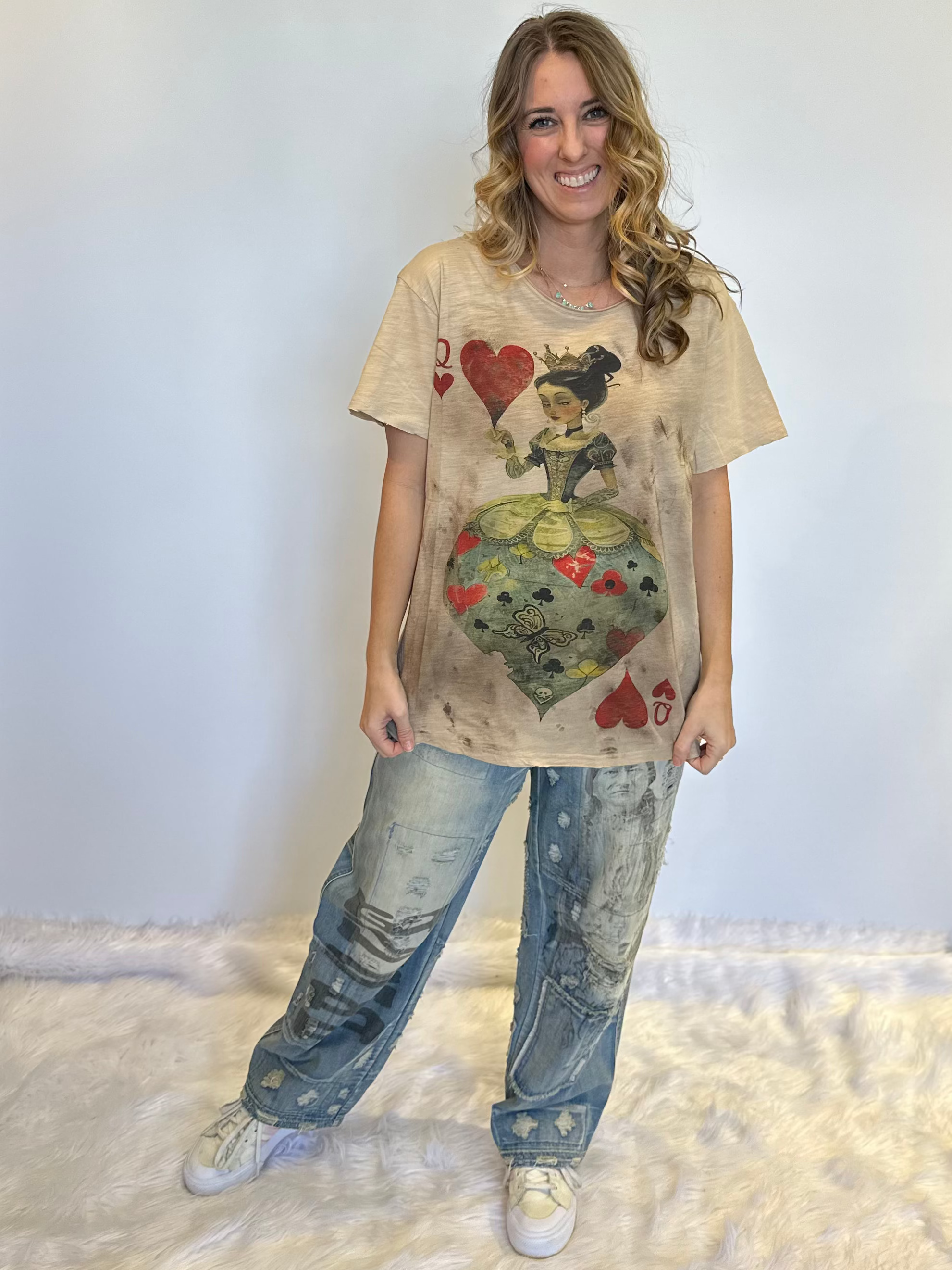 Shop the Jaded Gypsy Queen of Hearts Moon Dance Tee. A distressed, vintage-inspired boho graphic shirt for the wild at heart. Perfect for effortless styling.