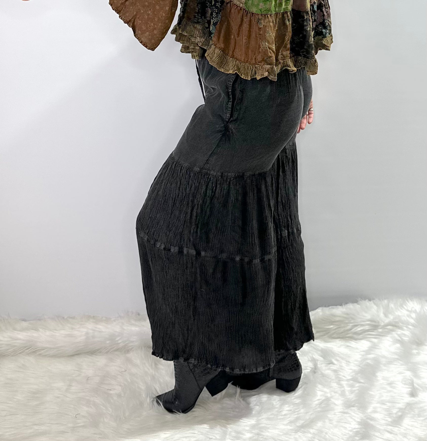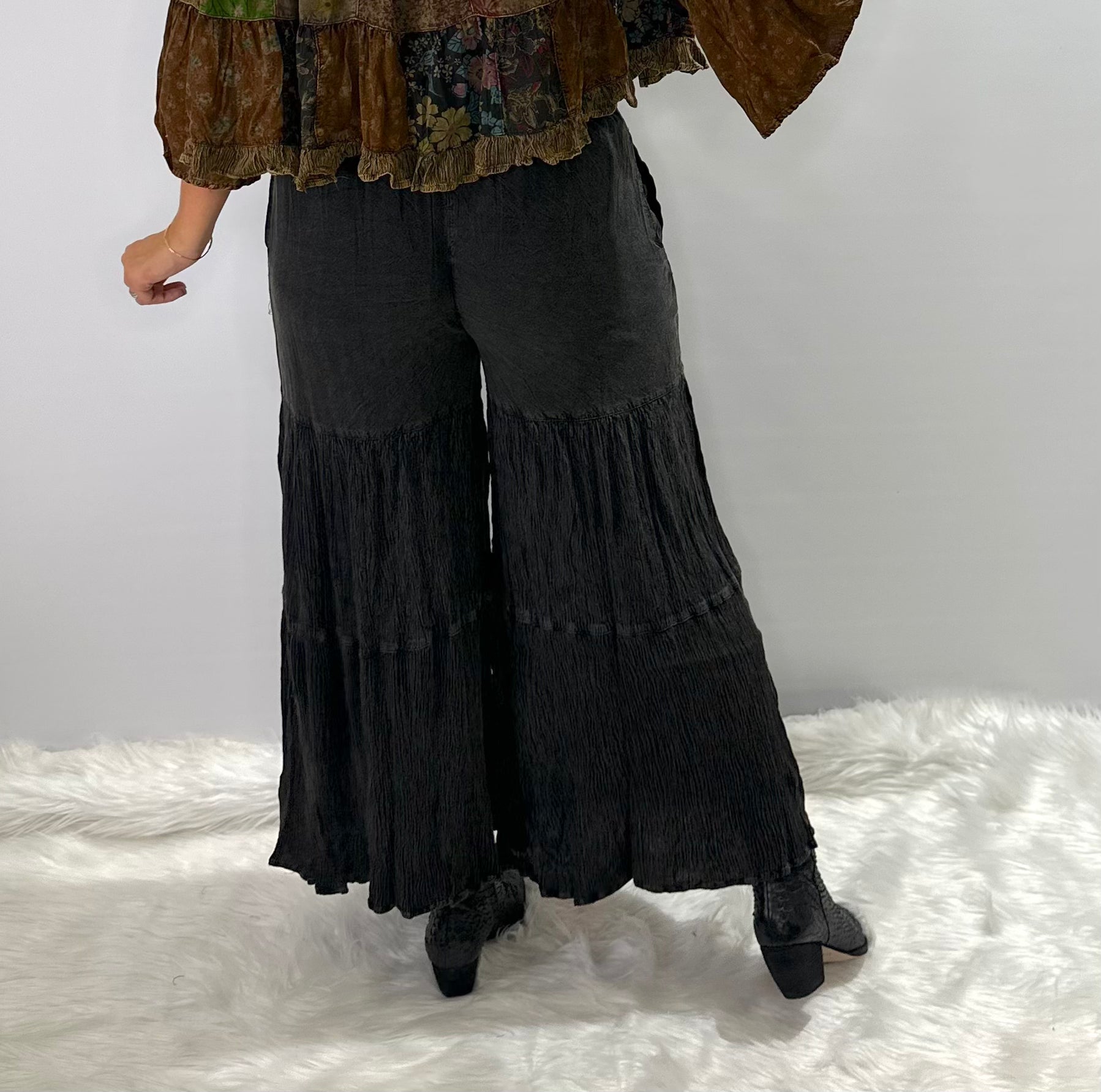 Complete your modern western look with the Midnight Mesa Tiered Pants - a perfect match to our Midnight Mesa Tunic. Crafted from he same soft, woven back fabric with subtle deeper toned detailing, these pants deliver effortless boho movement with every step.