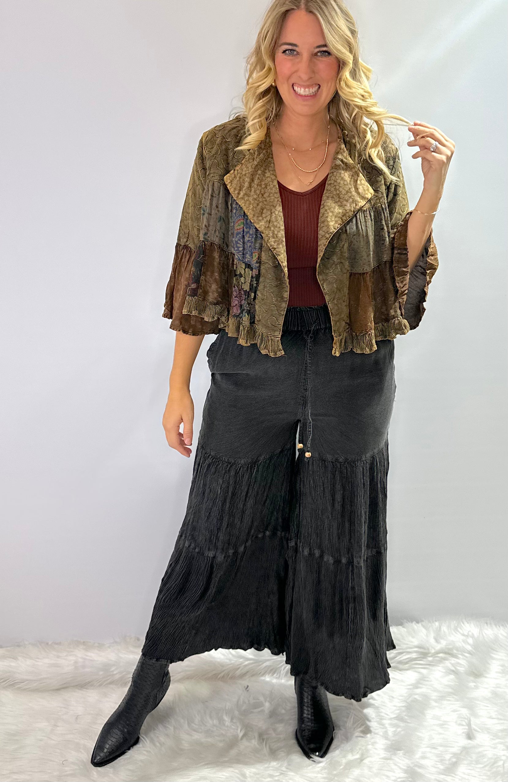 Layer on the artistry with the Autumn Ember Embroidered Bolero Jacket a boho-inspired beauty crafted in rich fall tones and textured woven fabrics. This cropped bolero silhouette features intricate embroidery throughout, giving it that handcrafted, soulful touch your wardrobe has been craving.