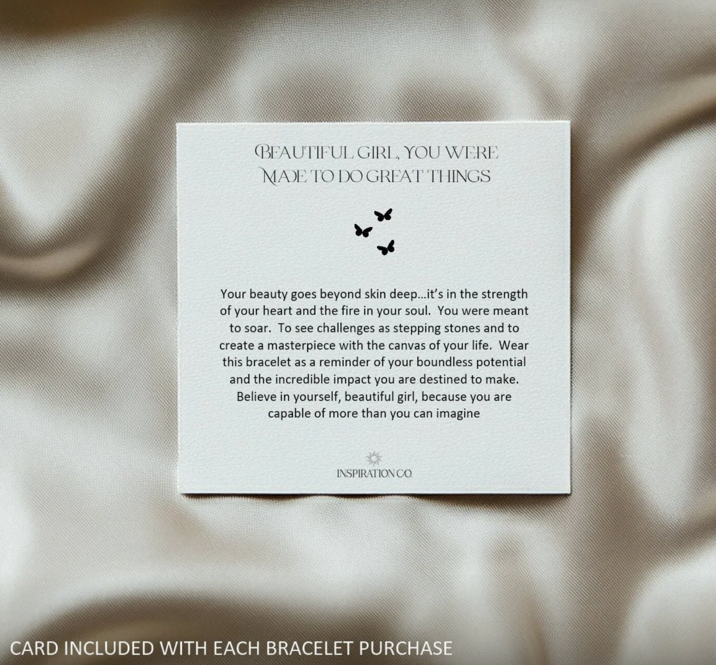 • Each bracelet comes with an inspiration card to enhance the message on each bracelet.