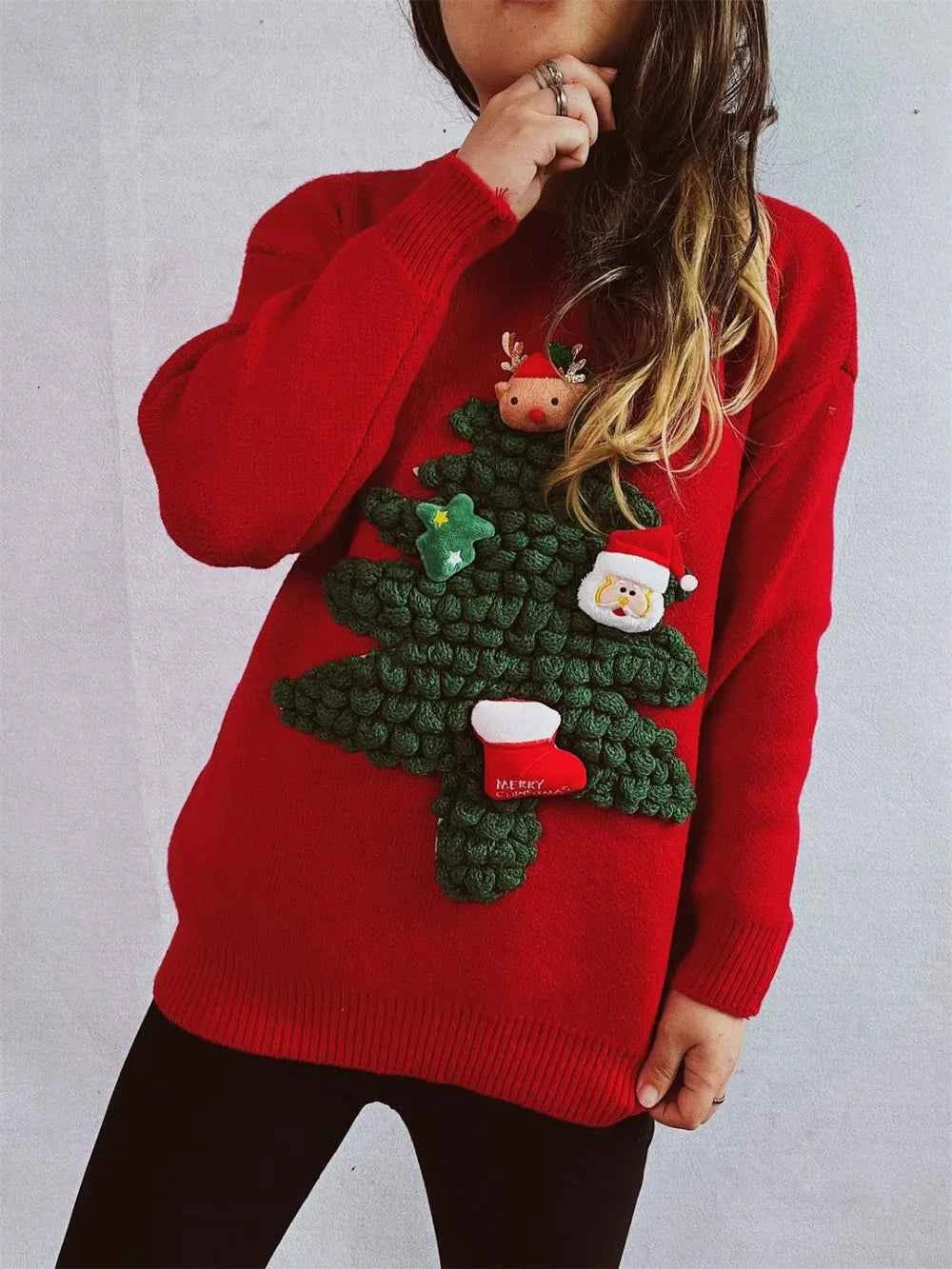 Christmas Tree Round Neck Long Sleeve Sweater